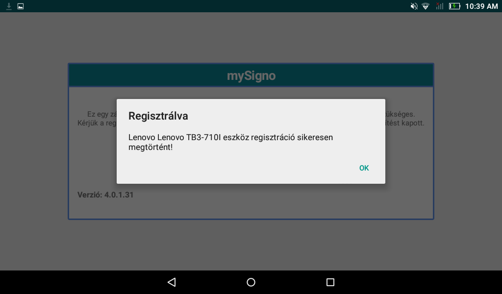A folyamat eredményéről mindig van sikeres/nem sikeres visszajelzés. A regisztrációs visszajelző üzenet tartalmazza az eszköz típus információt, amennyiben elérhető.
