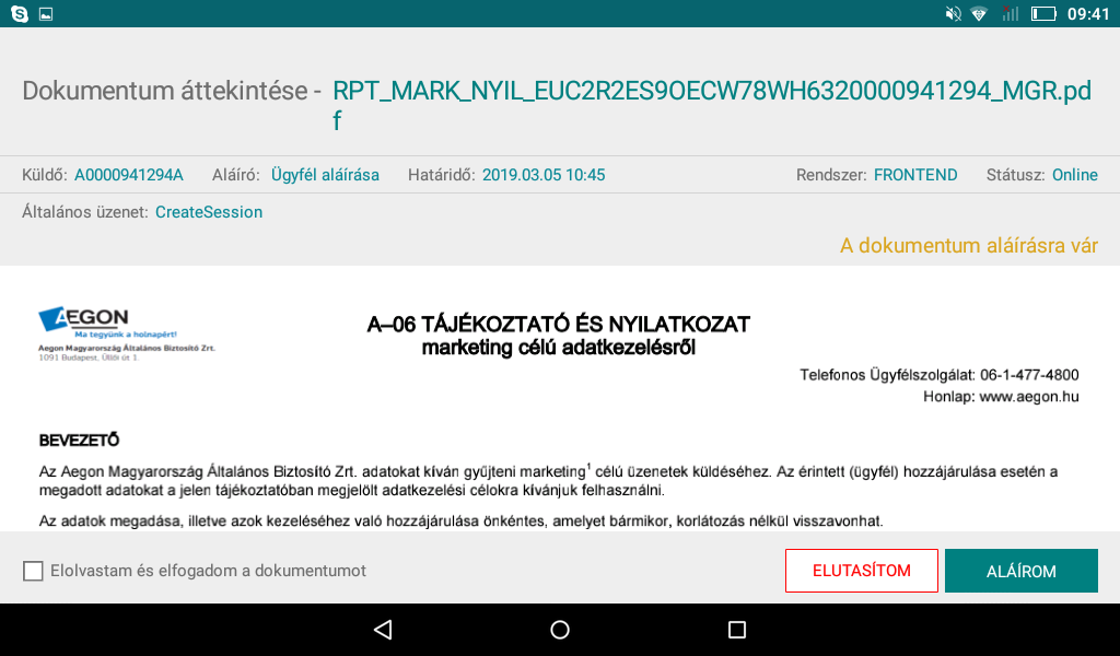A CollectSign rendszerben érkezett dokumentumokat az eszköz regisztrációja után meg lehet nyitni. A megtekintés a SignPad alkalmazással történik.
