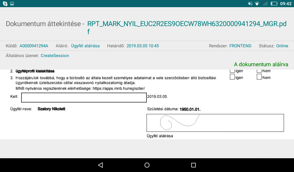 A CollectSign rendszerben aláírom gombbal megnyitott dokumentum megjelenítésre kerül.